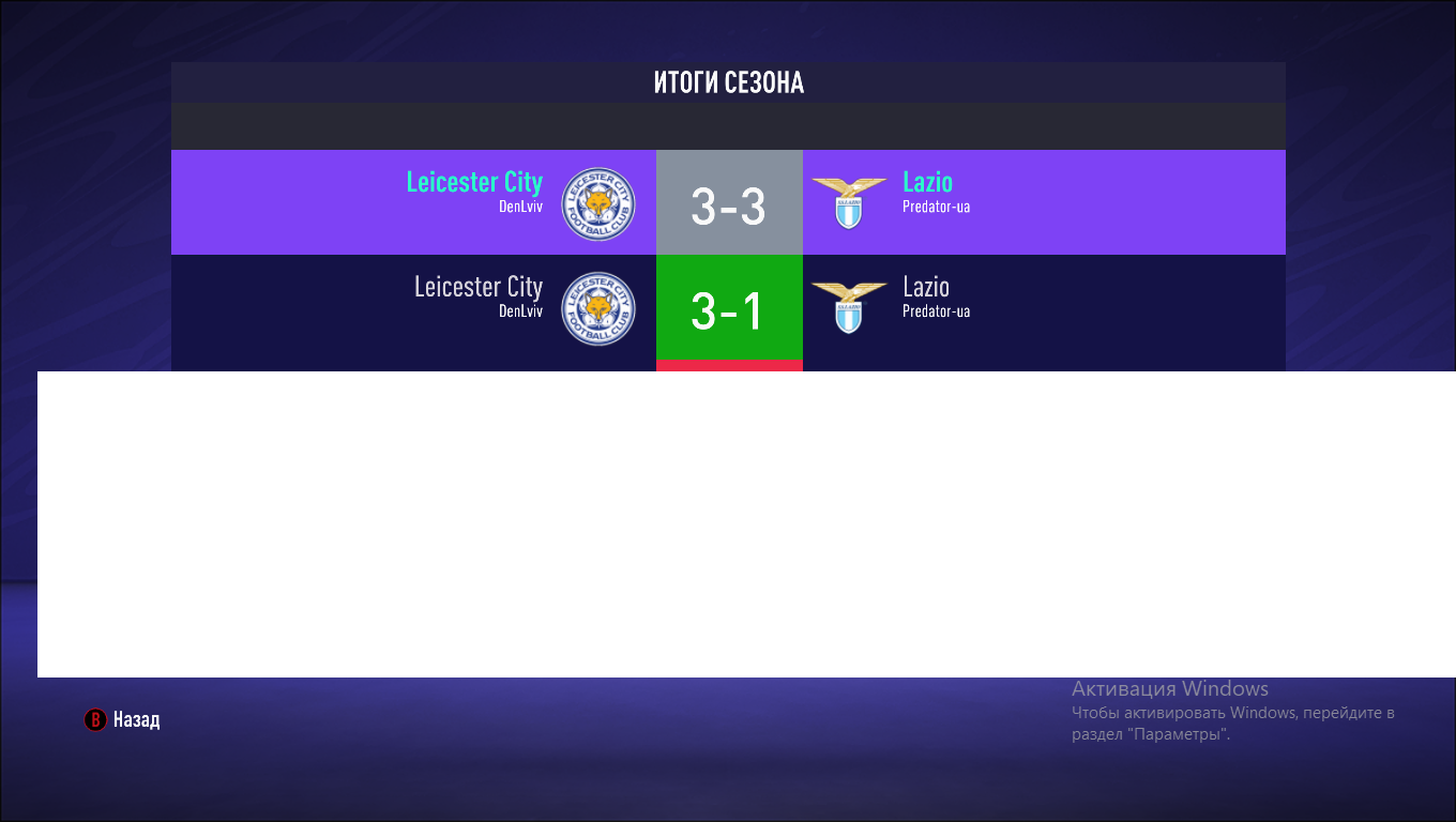| Результати матчів ліги Всі матчі граються виключно на ОНЛАЙН складах. При порушенні цього правила будуть призначатися технічні поразки ТП або перегравання матчів на розгляд адміністратора сайту.